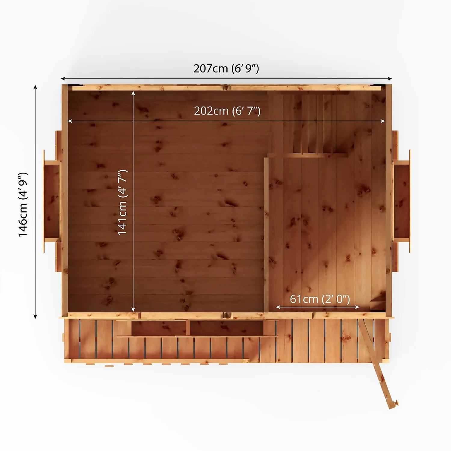 - Tongue & Groove Roof and Floor – Heavy duty interlocking boards create a premium, strong and robust finish