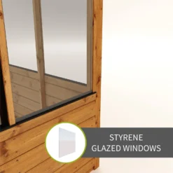 The 8 x 4 Lean-To Greenhouse is a great space-saving design that simply attaches to the side of a permanent wall to maximise the outside area. Premium tongue and groove boards are used to construct the lower section of the greenhouse walls. The glazing is made of UV protected styrene, which allows maximum light into the greenhouse while being safe and shatterproof. The greenhouse has been designed with no floor, to ensure water can drain easily after you have watered your produce.