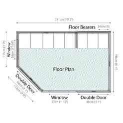 The walls and floor of this summerhouse are constructed using heavy duty tongue and groove boards. Complete with thick wooden framing to support the cladding internally, this building offers a rigid and long-lasting structure.