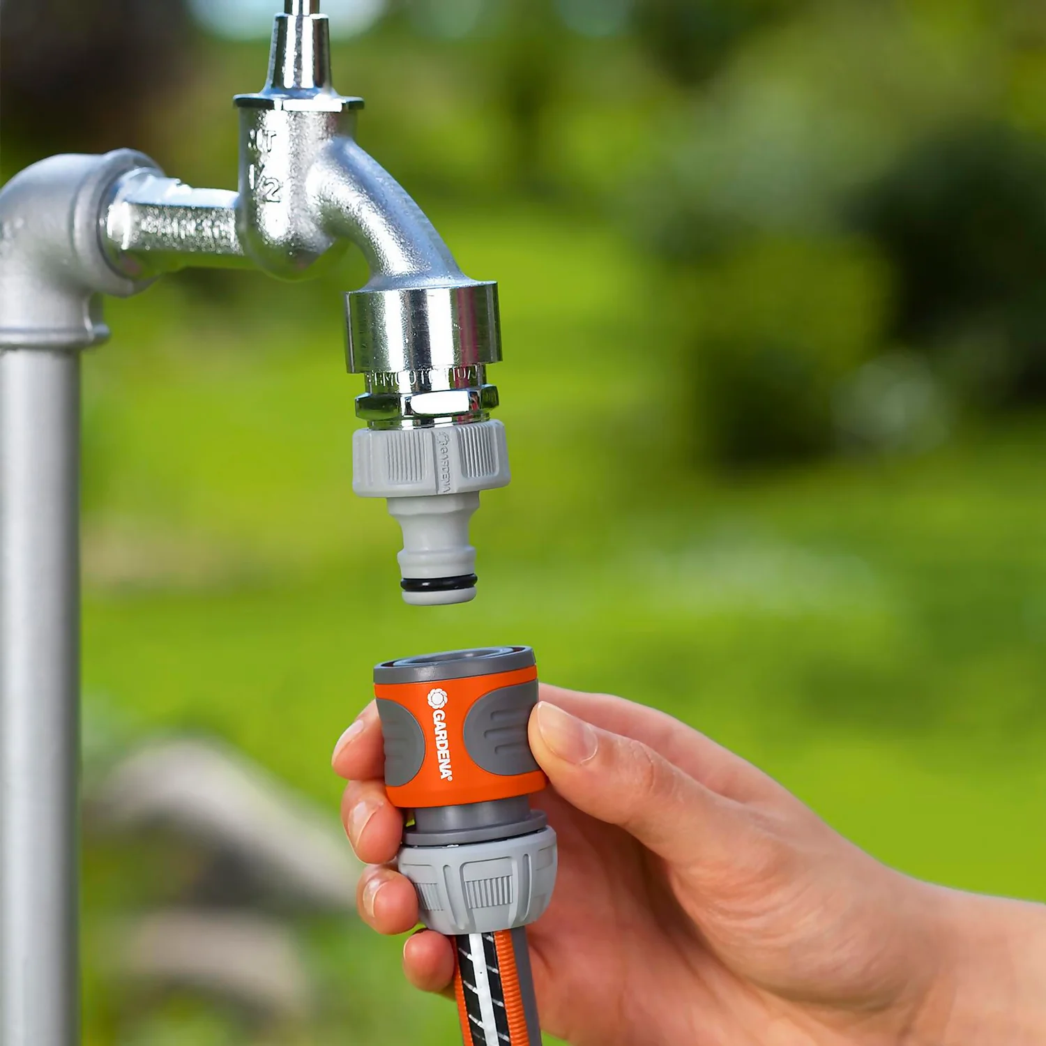 The GARDENA connector set come complete with two tap connectors and a hose connector. The set provides a fast and convenient connection to the tap. Easy, problem-free handling is guaranteed thanks to the tool-free attachment. Through simply pulling, the connection can be released. Suitable for taps with 26.5mm (G 3/4″) taps and13 mm (1/2″) and 15 mm (5/8″) hoses.