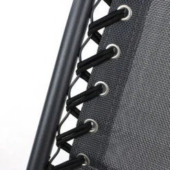 This grey reclining sun lounger provides a wonderful place to sit and relax. The textilene fabric withstands outdoor elements, and offers comfortable breathability while in use.
