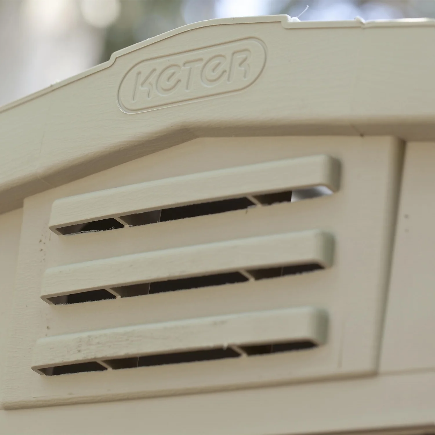 - Elegant wood affect exterior with double doors, plus ventilation grills for air circulation