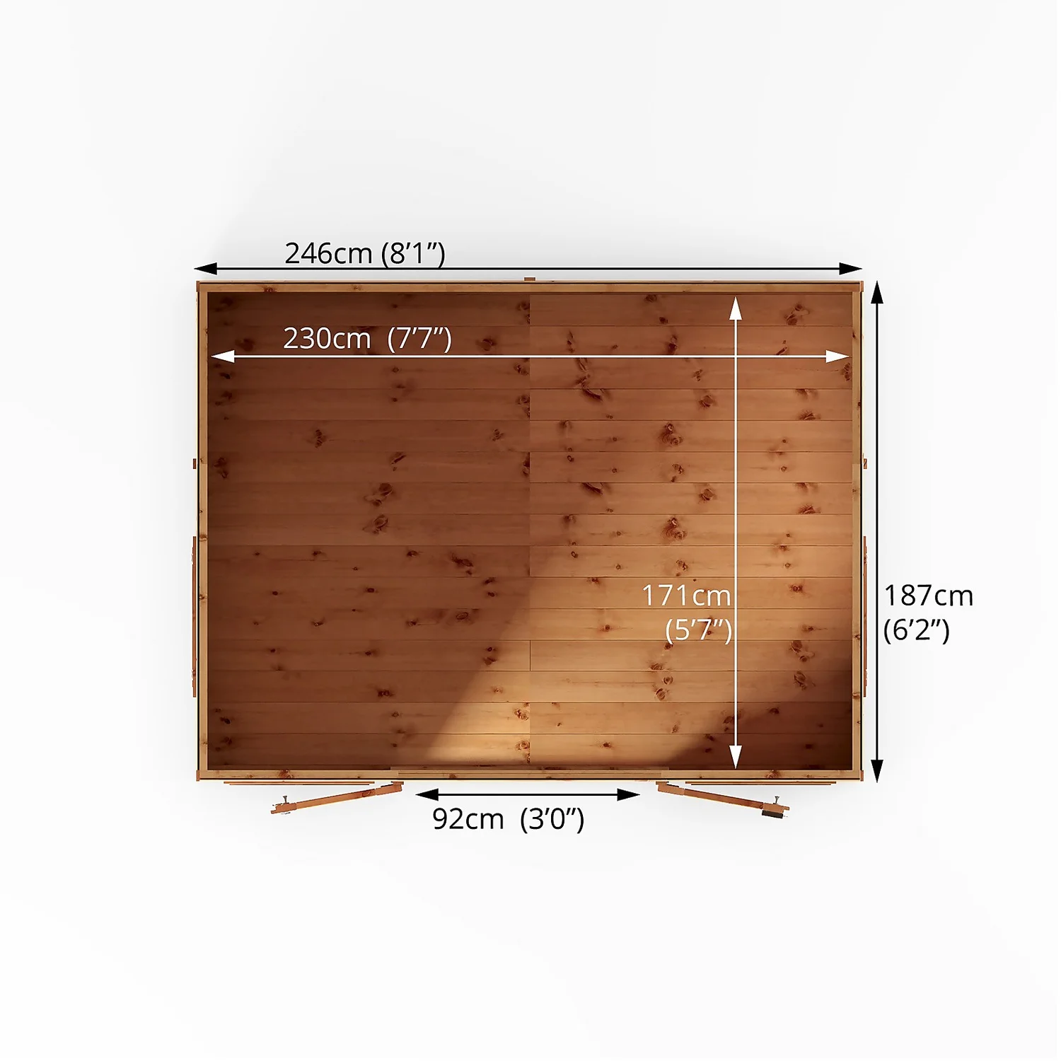 The Mercia 8 x 6 Clover Summerhouse is a spacious, elegant and stylish summerhouse. Featuring a traditional hip roof, there is generous headroom inside providing an open and spacious room. This summerhouse boasts two fixed styrene windows and two opening styrene windows create a bright and airy interior. Double doors offer an open plan feel, perfect for family barbecues and social gatherings during the summer months.