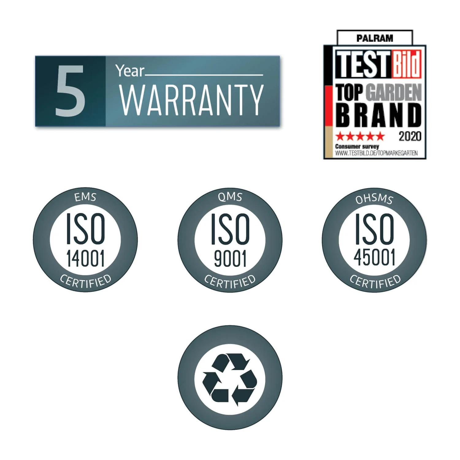 - Sturdy, grey powder-coated aluminium frame provides a highly durable, rust resistant and rigid structure