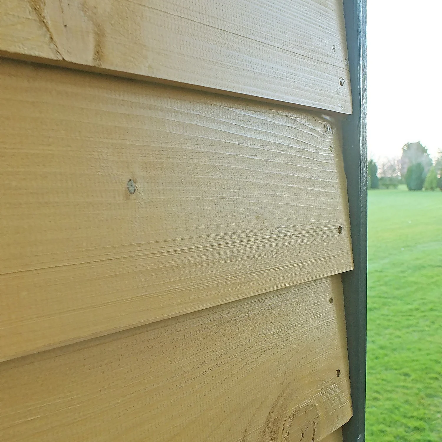 The building is constructed on strong 44 x 70 mm (2″ x 3″) square framing and clad with 20mm rebated bevel cladding overlap boards made only from the highest grade, slow grown, FSC approved, northern European pine.