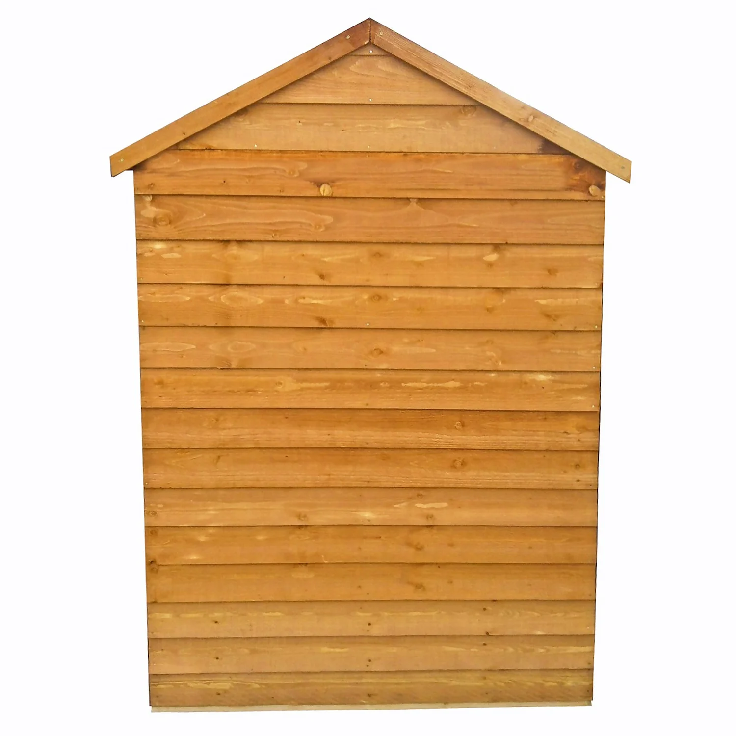The 4 x 3 overlap double door shed is distinguished from many of its competitors because of the wide double doors in the 4′ gable and the generous 6’4 height at its centre. This means that there is easy access to the entire space. This compact shed is manufactured from high grade, slow grown, FSC approved, European pine cladding boards over 34mm square framing. The doors are fitted with a hasp and staple catch ready for your own padlock. Both roof and floor are constructed from solid sheet OSB boards. There are no windows in this model.